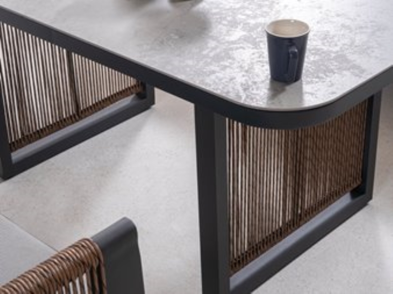 Masa üst yüzeyi seramik/porselen malzemeden üretilmiş olup ısıya karşı dayanıklıdır.